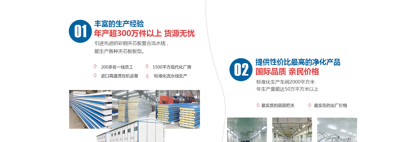 蘇州巨百凈化產品有限公司是一家從事研發(fā)、銷售、凈化彩鋼夾芯板、凈化產品及設備的公司。擁有全新機制彩鋼夾芯板生產線的合作伙伴, 日均產量可達6000平方,以提供凈化工程配套產品的設計、制作、安裝、維護。經營范圍包括凈化彩鋼板、凈化配件、凈化產品、凈化燈具、凈化鋁型材銷售,凈化工程、無塵車間、實驗室項目的設計、安裝和信息咨詢。主要銷售產品有凈化彩鋼板巖棉板、琉氧鎂板、中空玻鎂板、聚氨酯板、凈化燈、凈化鋁型材、凈化門、鋼質門、FFU、凈化燈具、風淋室、傳遞窗、凈化設備等,承攬各種潔凈房、實驗室的設計、制作...